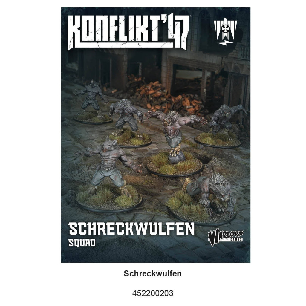 One of the more stable and successful Axis Rift-tech genetic enhancement projects combines human and canine DNA, creating the Schreckwulfen - hulking beasts with a strong resemblance to the mythological werewolf. Utterly terrifying in combat, their howls fill enemy troops with dread.