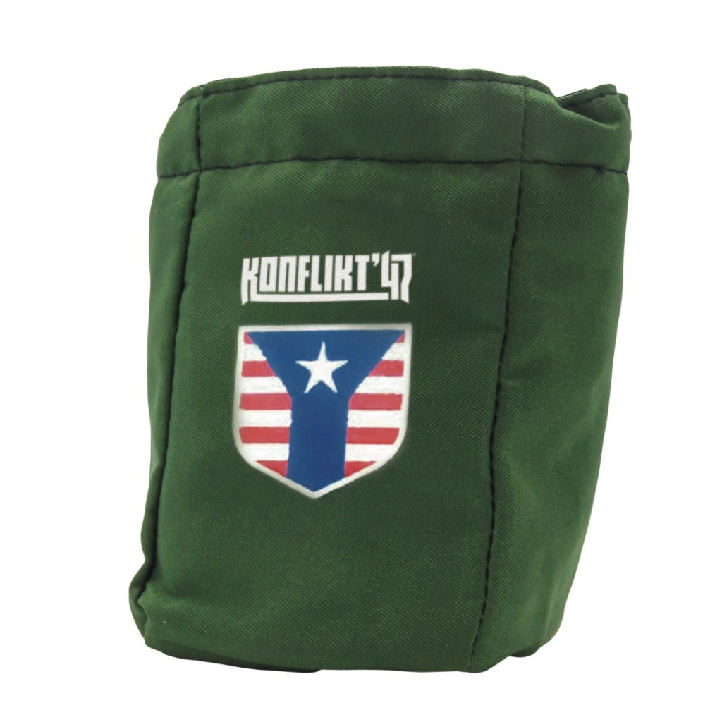 Draw your Order and Rift Dice in style with the fantastic "Konflikt'47 - K47 United States Dice Bag", proudly displaying the flag of the United States. It’s perfect for games of Konflikt '47 and also keeps your dice safe between battles.