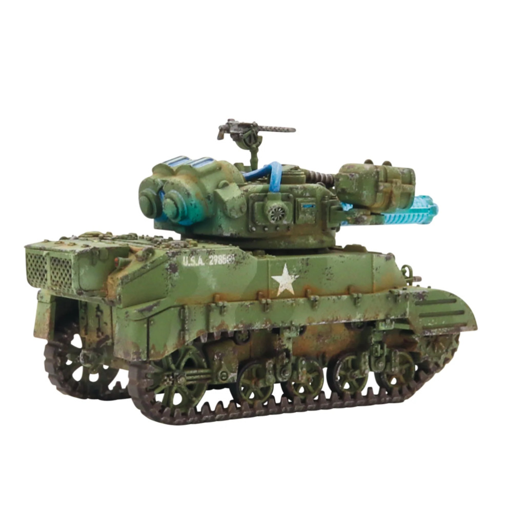 The M5 Stuart is an improved version of the Stuart Light tank series, famous for its speed, reliability, and adaptability. As with the M3, the design has similarly been up-rated to carry Tesla weaponry in a specially designed turret.