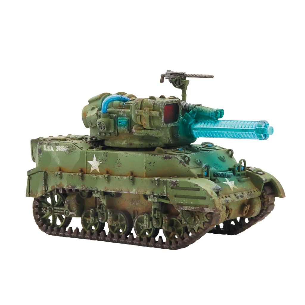- 1 resin and plastic american tank armed with a Light Tesla Cannon