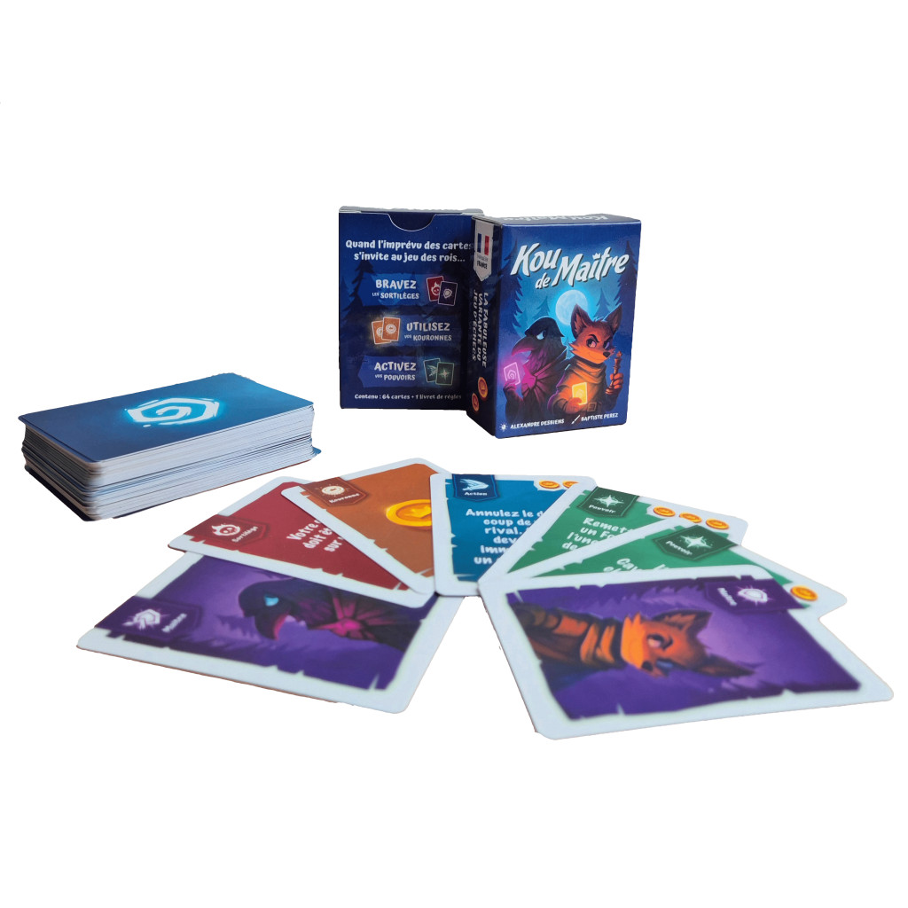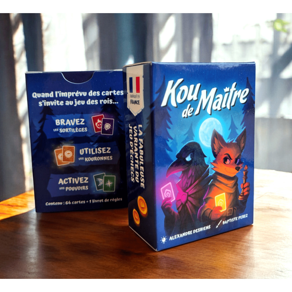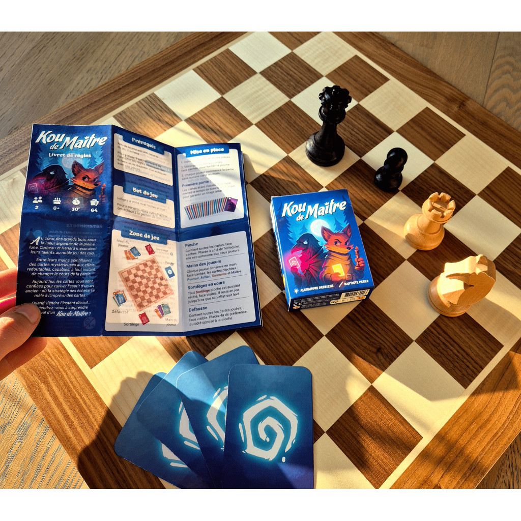 Kou de Maître is a tactical card game that joins your chessboard. Each turn, draw cards and secretly build your hand: Thunderous Actions, Magical Powers, Unpredictable Spells, Precious Crowns or Formidable Masters.