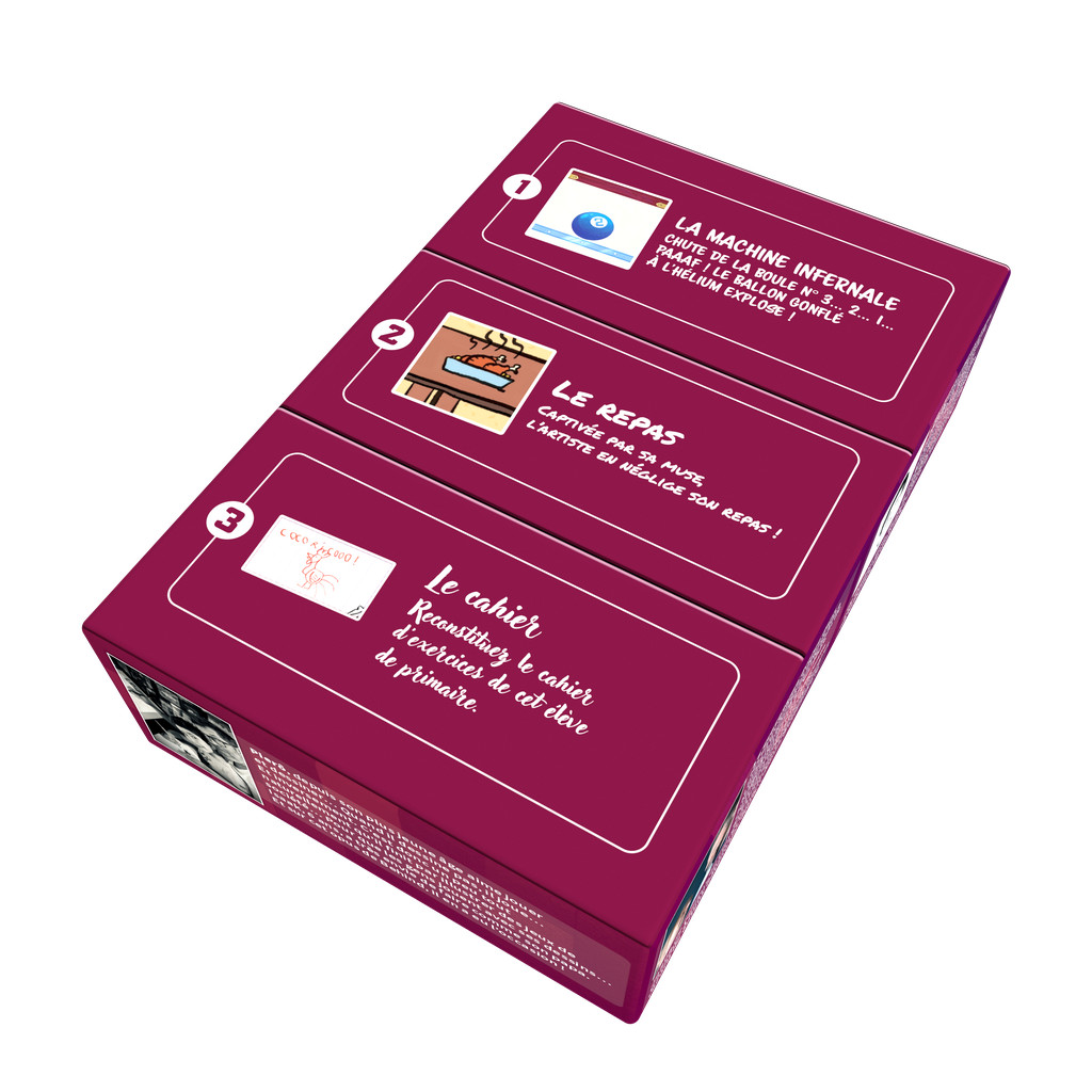In a box of Behind, you'll find 3 paintings with unique mechanics, created by Cédric Millet.