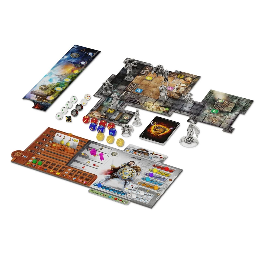Pour vous lancer dans cette aventure, réservez vous quelques soirées, elles en vaillent le coup si on veut vivre une aventure dont vous êtes le héros. La première chose qui frappe est la quantité de matériel : figurines, cartes, plateau double couche, dés, cubes, … Il y a de quoi faire mais tout prend parfaitement place dans la boite, que vous ayez la version héroïc (la version du Kickstarter) ou la version boutique.