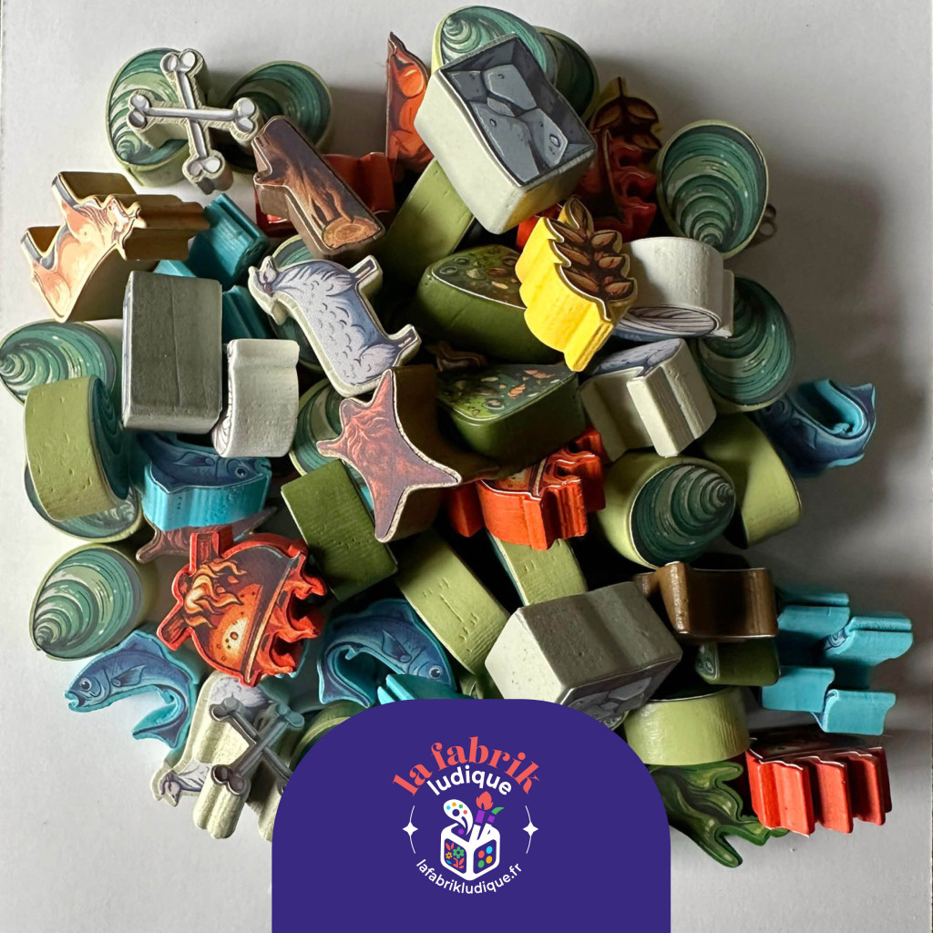 Some illustrations are partially created using generative AI, then refined and reworked by La Fabrik Ludique to ensure the best rendering on meeples.