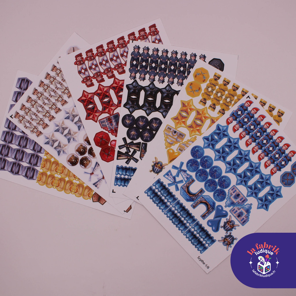 Assert the power of your faction by giving a new dimension to your meeples and tokens with this sticker pack specially designed for Scythe. Each sticker is crafted to enhance the game components while staying true to the dieselpunk universe of 1920s Eastern Europe: iconic factions, imposing machines, and a tense strategic atmosphere.