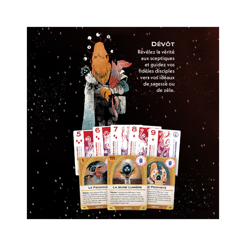 - A Galaxy of Possibilities: Explore 24 Fates, each with a unique set of cards and pieces. Will you lead the guilds to take control as the Advocate or try to build a new commonwealth as the Founder?