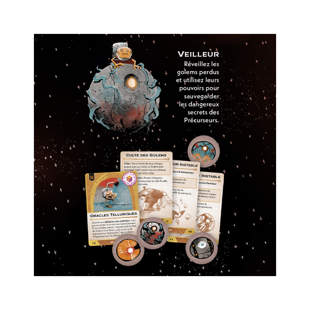 - A Galaxy of Possibilities: Explore 24 Fates, each with a unique set of cards and pieces. Will you lead the guilds to take control as the Advocate or try to build a new commonwealth as the Founder?