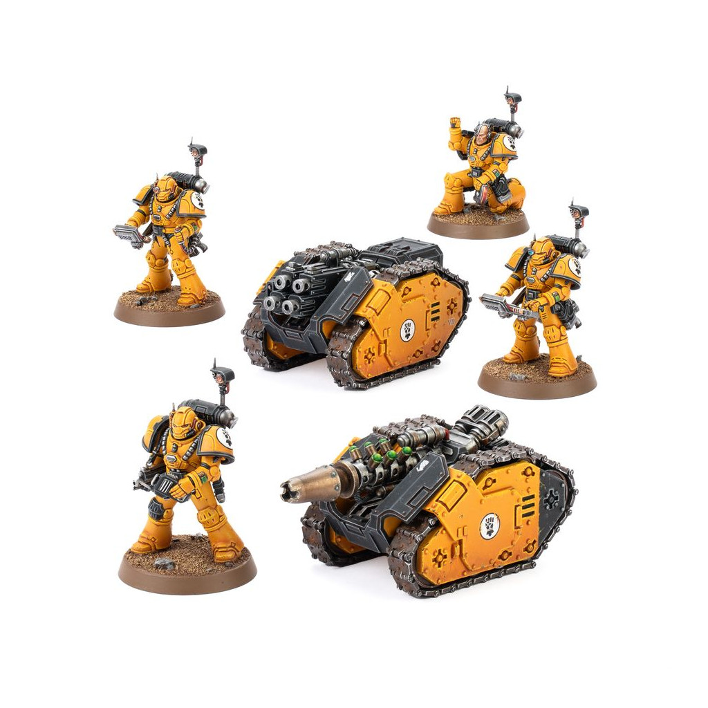 Rapier carriers are semi-automated tracked weapons carriers with on-board targeting systems and power generators. They are designed to mount support weaponry too large and cumbersome for even the superhuman strength of a Space Marine to carry. Common armaments include quad heavy bolters for anti-personnel duty, while less commonly, more exotic weaponry such as the graviton cannon are mounted for special operations.