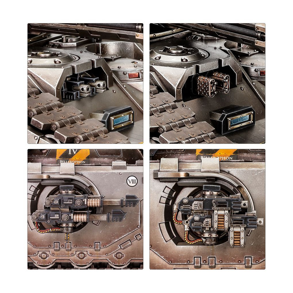 The Glaive can take either twin heavy flamers or twin heavy bolters as hull-mounted weapons, as well as lascannon arrays, laser destroyers, or Gravis heavy bolter arrays in the sponsons, giving you the tools to take on any enemy. The kit also includes parts to add an optional hunter-killer missile, smoke launchers, and a searchlight.
