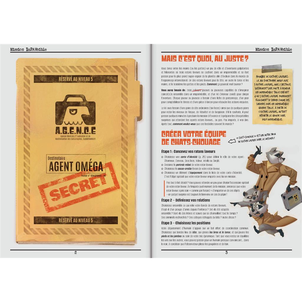 Mission ImPAWsible is an improvizational roleplaying adventure game of high stakes and hilarious capers where three raccoons in a trench coat pose as the globe’s greatest super spy to enter the world of international espionage.