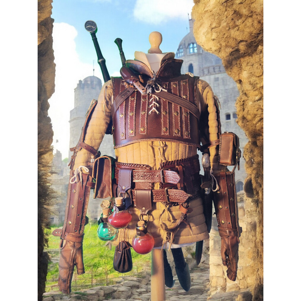 The raw finish, leather texture and glass give it a strong, believable visual impact. This potion holder adds practical utility while improving the character’s readability. Ideal for any player seeking a sturdy, immersive and coherent accessory for a medieval or fantasy setting.