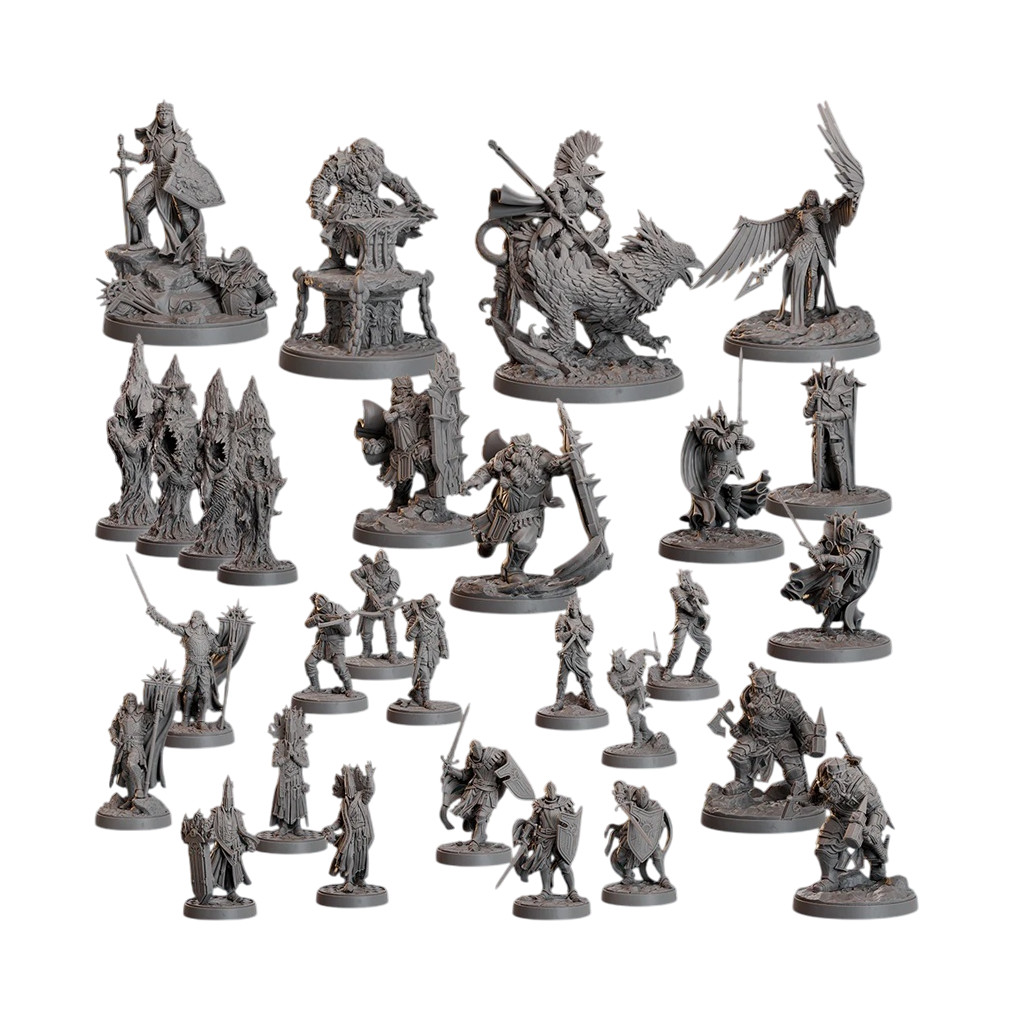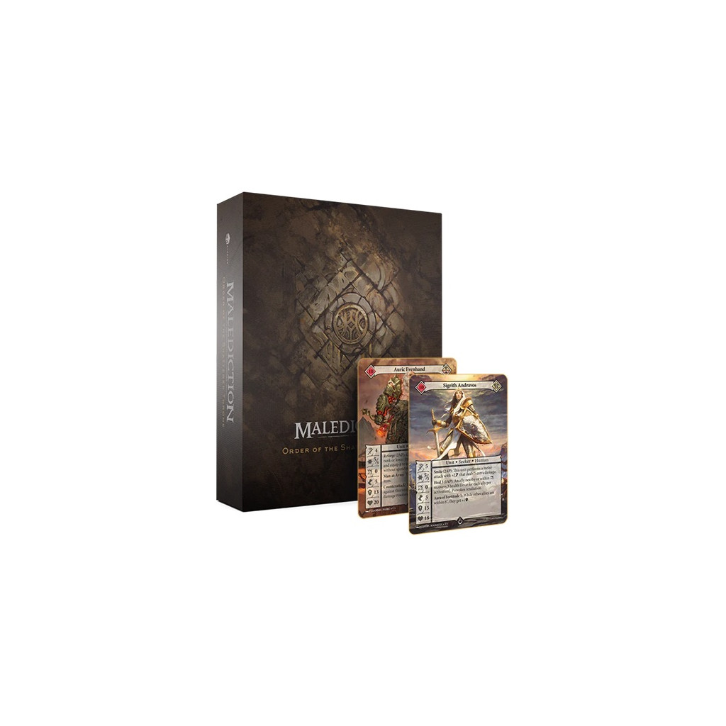 Face off against your opponents in this blend of miniatures and deck-building game, where resource management is key! You draw cards and earn more Echo each turn to pay for the units, items, and spells you play, building your band of warriors as you go and ensuring that every match is a constant surprise. You play as a Seeker, a champion of your faction, who leads a band of warriors through the cursed lands of the Curse and battles enemies to recover the relics of the former holders. The game can be played face-to-face or in teams. Players bring the terrain of their choice to create a battlefield and battle each other using their custom decks, with each Seeker offering distinct play styles and creative ways to combine cards from their associated factions. The goal of the game is to reach the mastery threshold for a scenario. Players gain mastery by defeating enemies and keeping relics, which can be recovered if their units are near an uncontested corpse at the end of a turn. Malediction is played in several rounds. Each round consists of 4 phases: 1. Refresh Phase: Players gain an echo equal to 2 times the round number, refresh their units, draw 2 cards, and resolve an initiative auction. 2. Deployment Phase: Players deploy units and items to the battlefield. 3. Action Phase: Players activate their units in turn. 4. End Phase: Players attempt to collect relics from nearby carcasses and check to see if they have won the game. Once the End Phase is complete, if no player has won the game, a new turn begins, starting with the Refresh Phase. Note: Requires multiple different boxes to play with 2, 3, or 4 players. Important: game figures are not included. Only digital files (STL format) are included, for printing your figures.