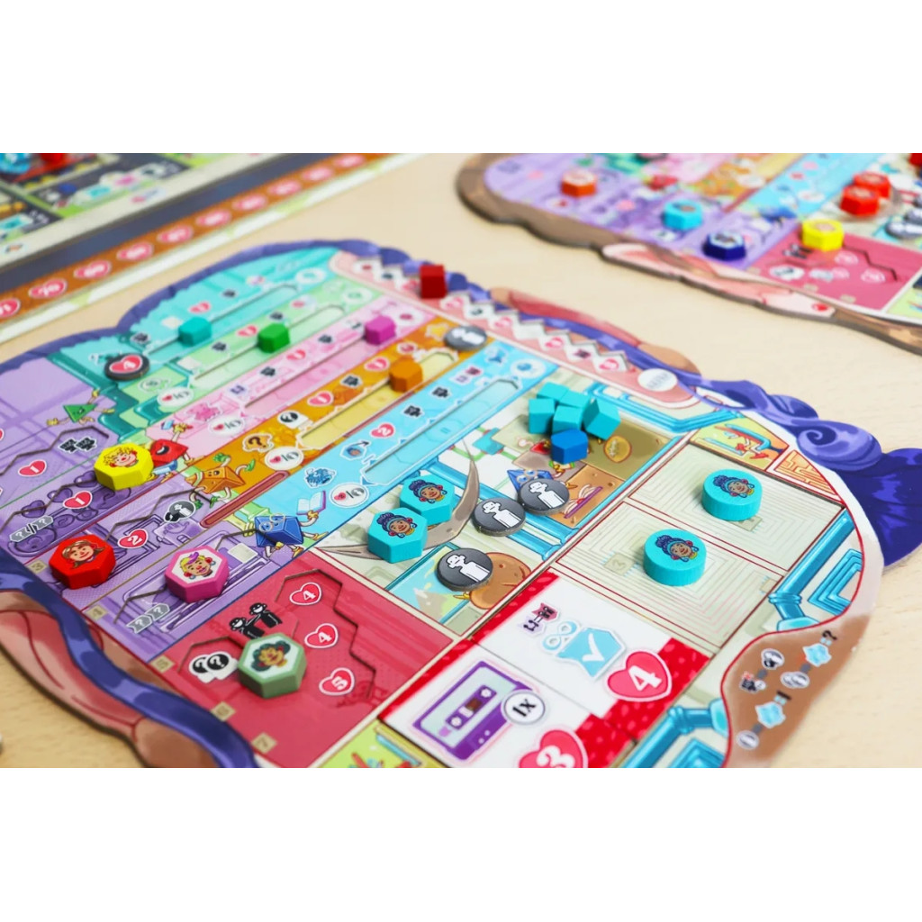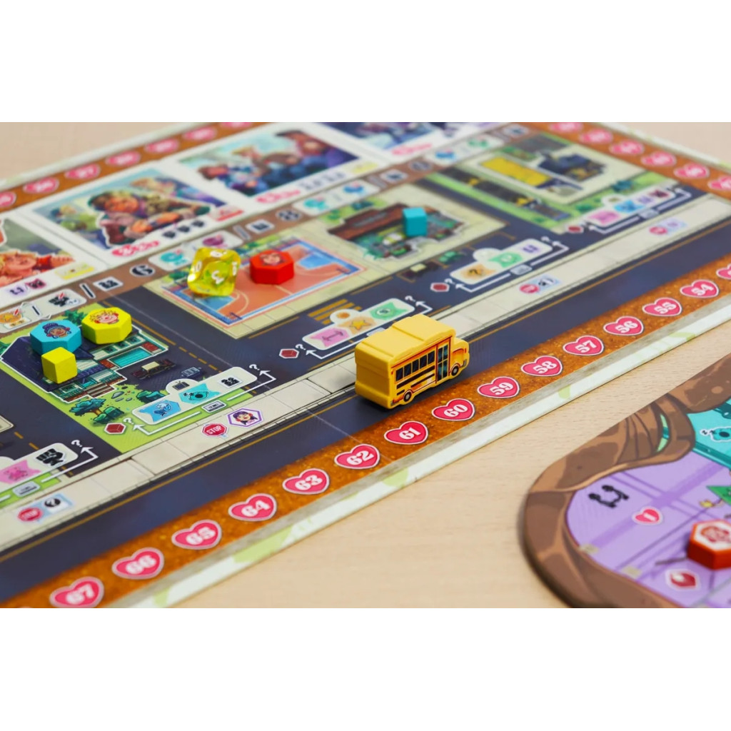 Using a dice-management mechanism, you will visit different locations in the city, acquiring experiences that will modulate various aspects of your personality reflected on your personal board, with the goal of achieving the different life goals you will acquire during the game.