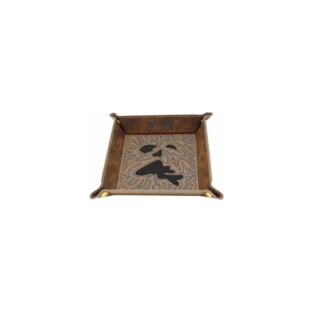 Evil Dead 2: The Board Game - Necronomicon Dice Tray is a faux leather dice tray with an embossed Evil Dead 2 logo and Necronomicon design on the front. Measures approximately 18 x 18 cm.