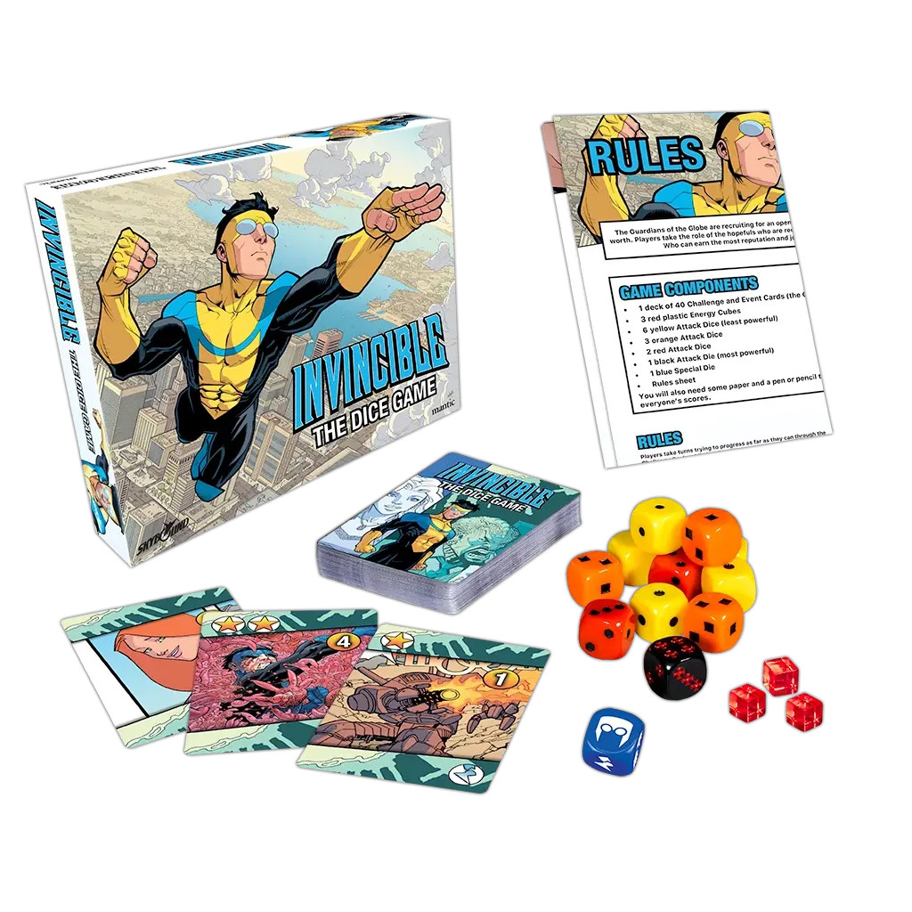 In Invincible: The Dice Game, players take the role of the hopefuls who are required to undertake a live trial by battling villains and besting other heroes! Who can earn the most reputation and join the Guardians, without losing the respect of their peers?