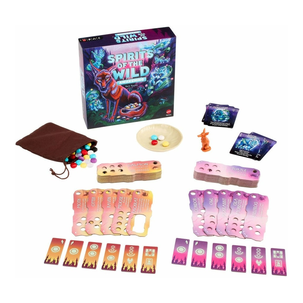 Spirits of the Wild - The Awakening is a two-player game in which players collect colored stones in a central bowl and offer them as gifts to score points.