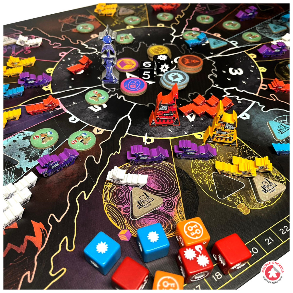 In this new expansion to the popular ARCS game, you are set on a new quest across the galaxy – and to make this adventure even more immersive, we bring you brand new stickers to decorate your meeples with. They are durable and long lasting, with vibrant colors to help your meeples really stick out on the board. Just stick them on and enjoy the difference!