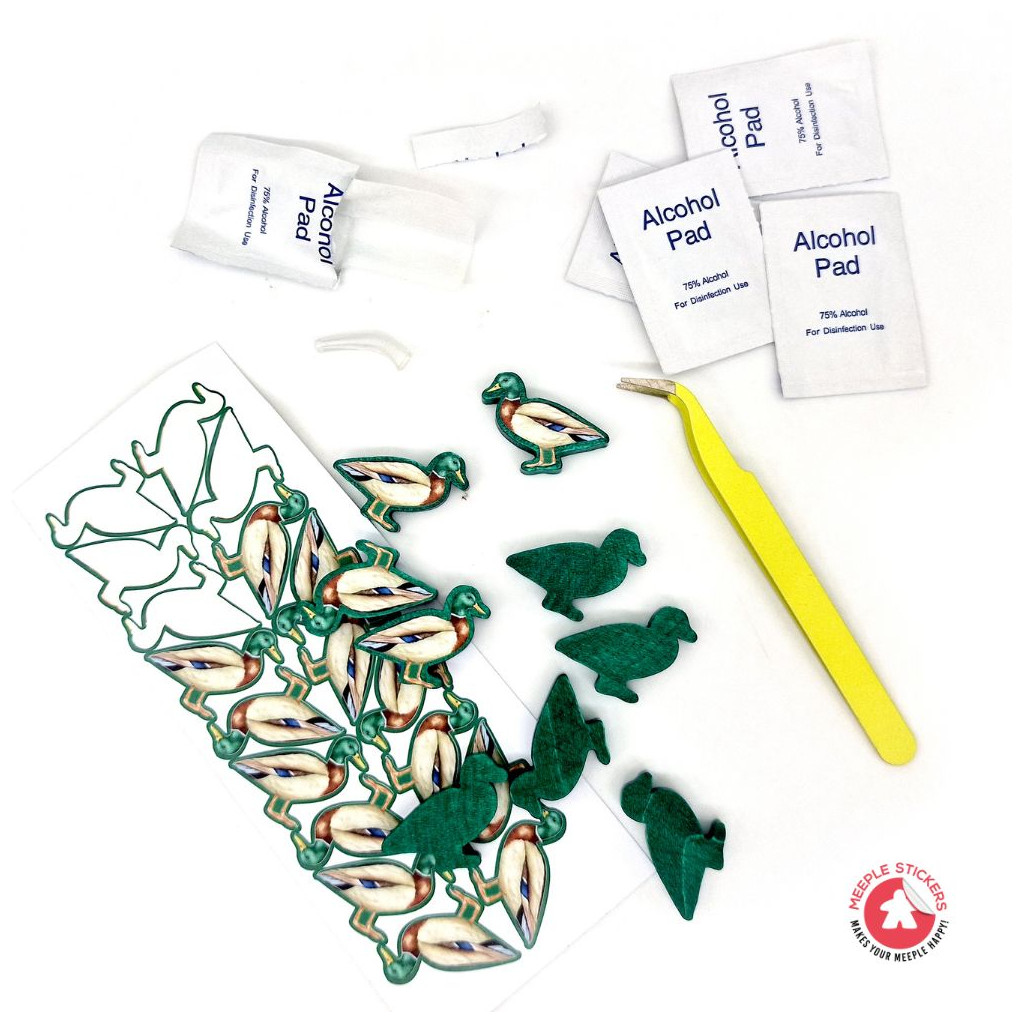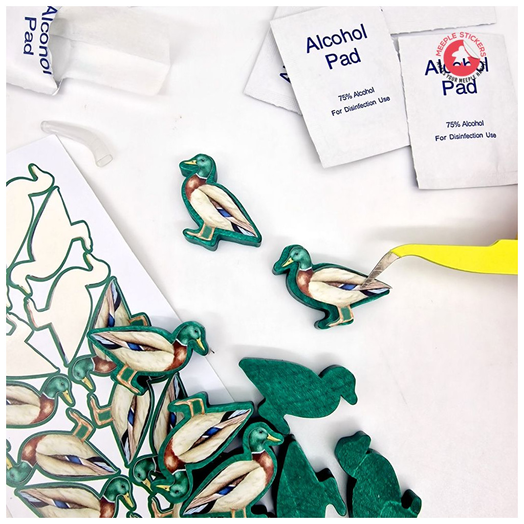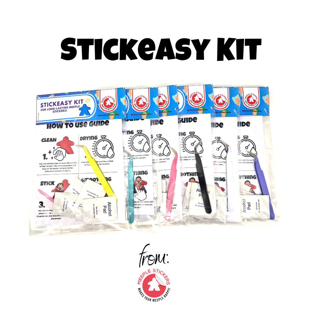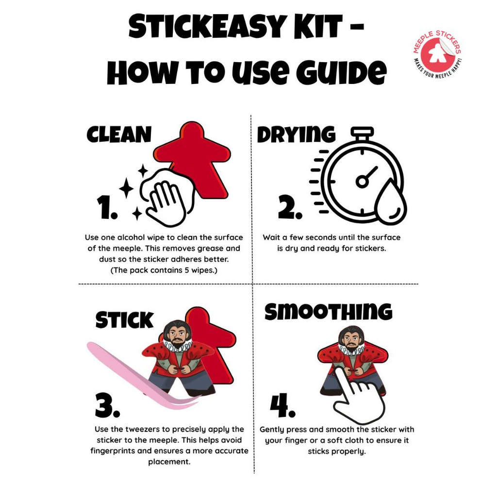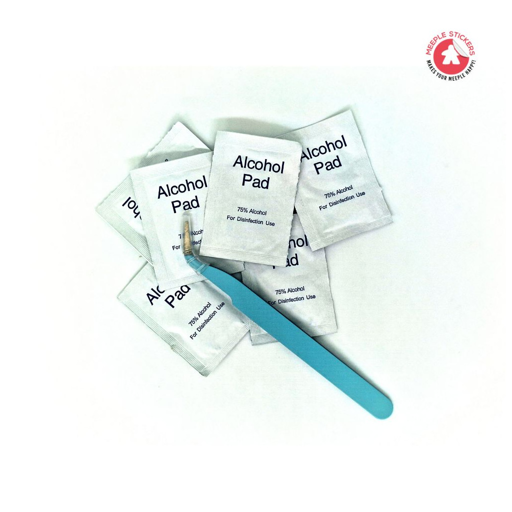 The perfect prep for perfect stickers! This pack includes an alcohol wipes and handy tweezers to make applying your gorgeous new meeple stickers cleaner, easier, and longer-lasting.