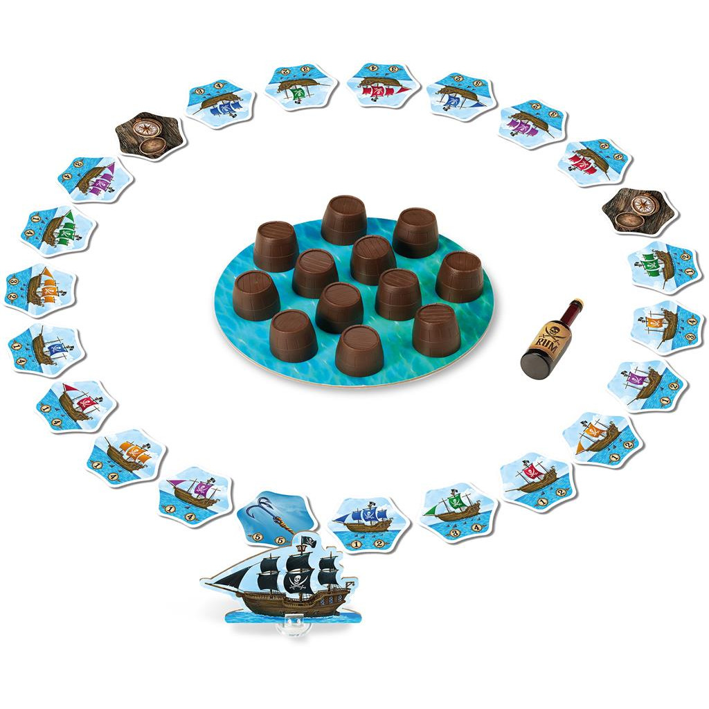 Navigate skillfully across the changing seas, use your memory to open the right barrels, and capture or steal the ships you need to build your armada of 3 similar ships… but watch out for Blackbeard!
