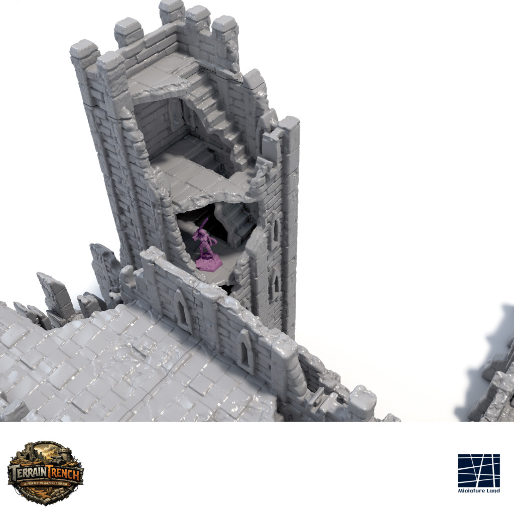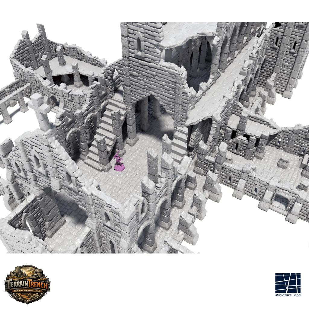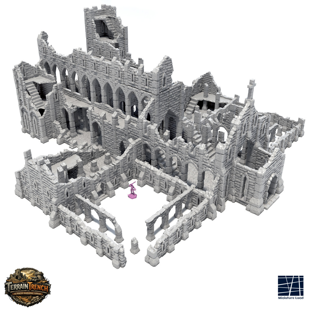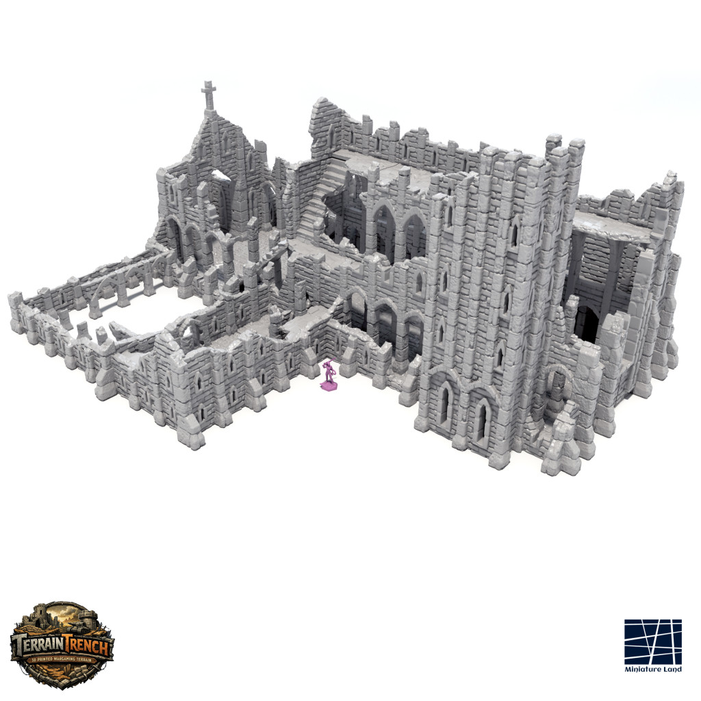 Included is a huge Ruined Monastery. This terrain piece is suitable for 28-32mm tabletop war games. The Monastery comes in 44 separate pieces. Some gluing may be needed to keep this terrain piece permanently assembled.
