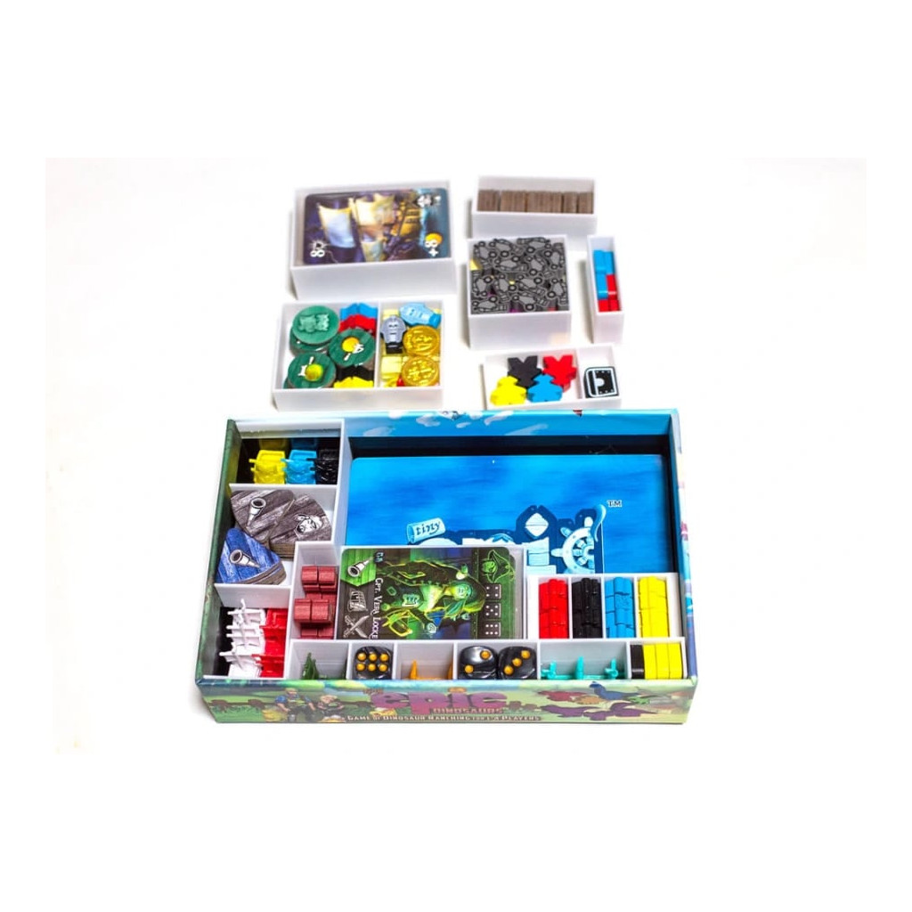 Each compartment is thoughtfully arranged to keep your game pieces secure and readily accessible throughout your adventures on the high seas. Ideal for avid fans of Tiny Epic Pirates, this insert not only simplifies your game management but also elevates the overall gameplay experience.