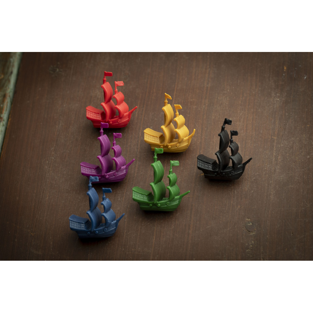 Lying Pirates is a fun and exciting adventure in which you must be the first pirate captain to reach around the islands, but your fellow pirates won't make it easy for you. Using strategy, a bit of bluffing, and some luck, will you be able to sail past them all, become the crowned champion and claim the throne?
