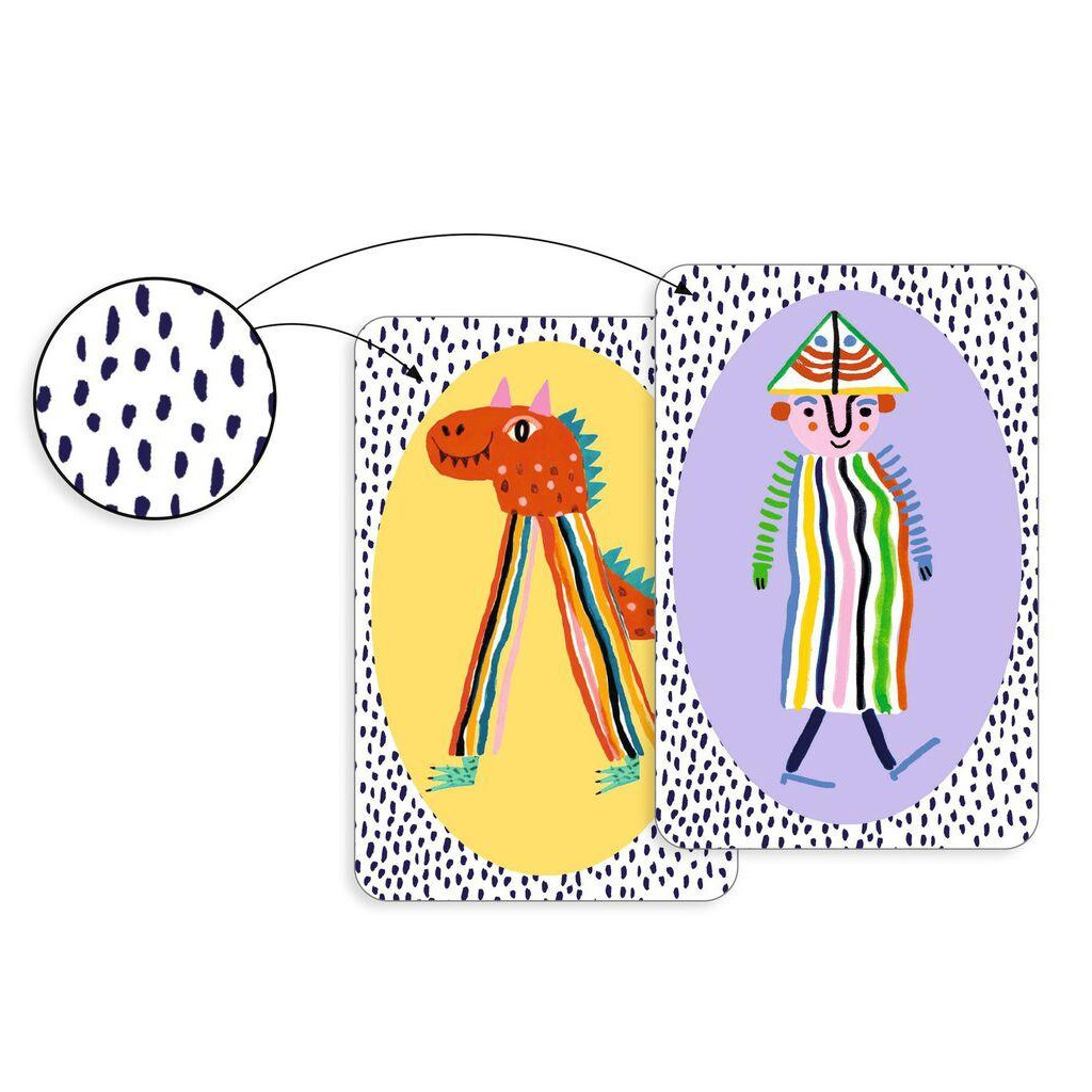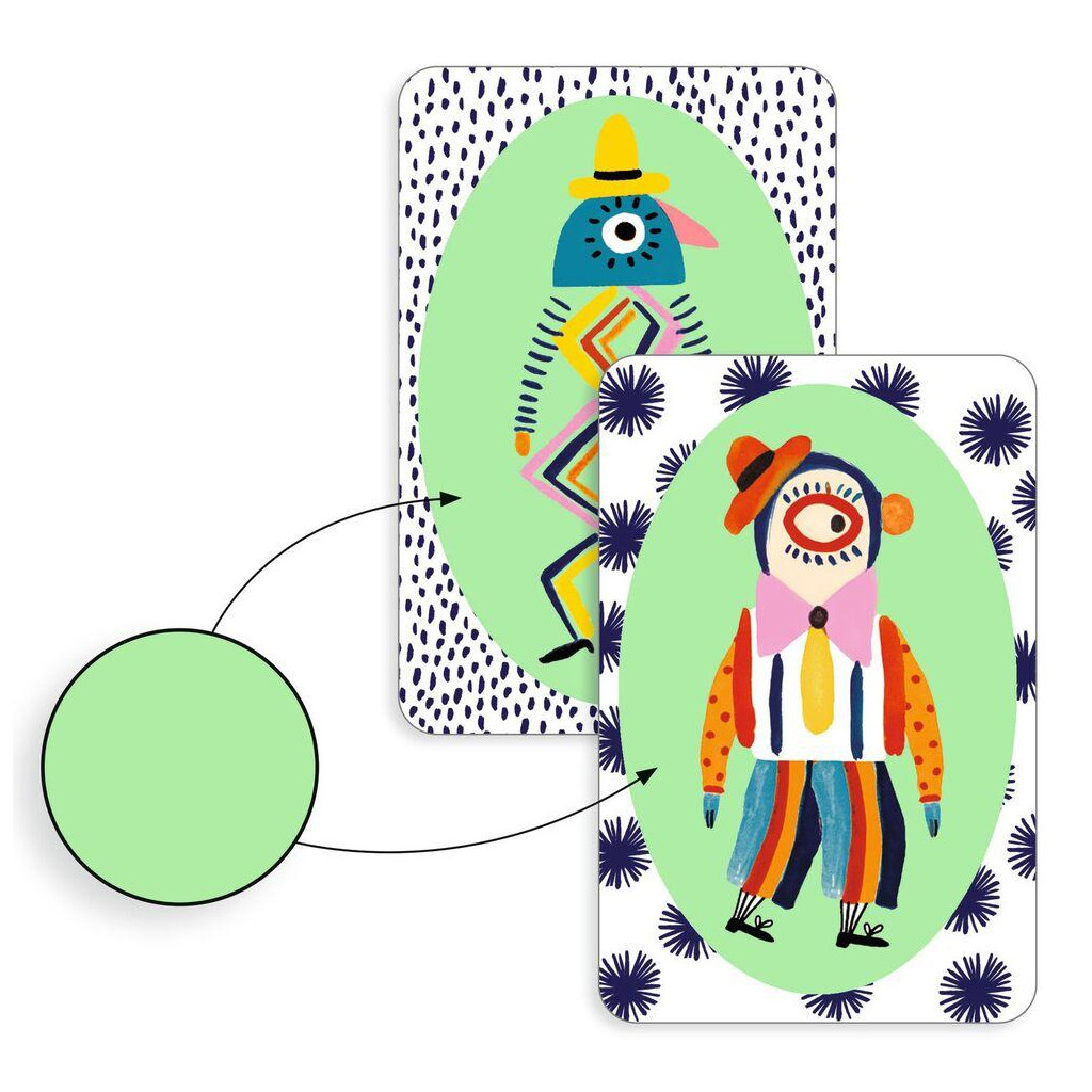 A fast-paced matching and speed game! To play a card, choose one that shares the same pattern, the same background color or the same wacky character with the card in the center of the table. Stay focused: turns follow one another at lightning speed! The first player to get rid of all their cards wins the game.
