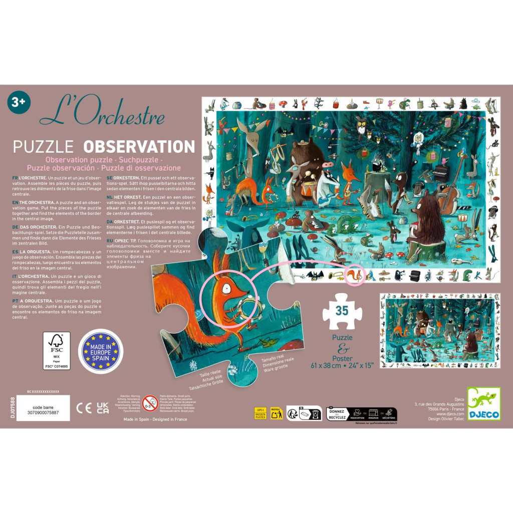 Content : 35-piece cardboard puzzle (61 x 38 cm), poster.