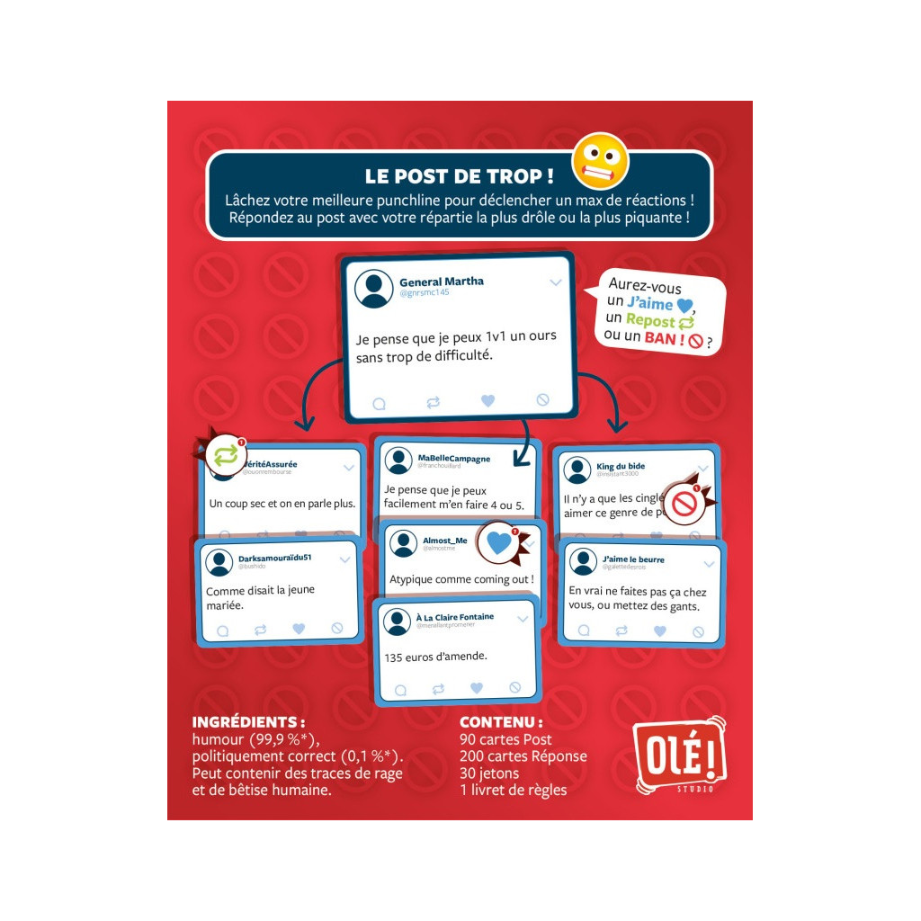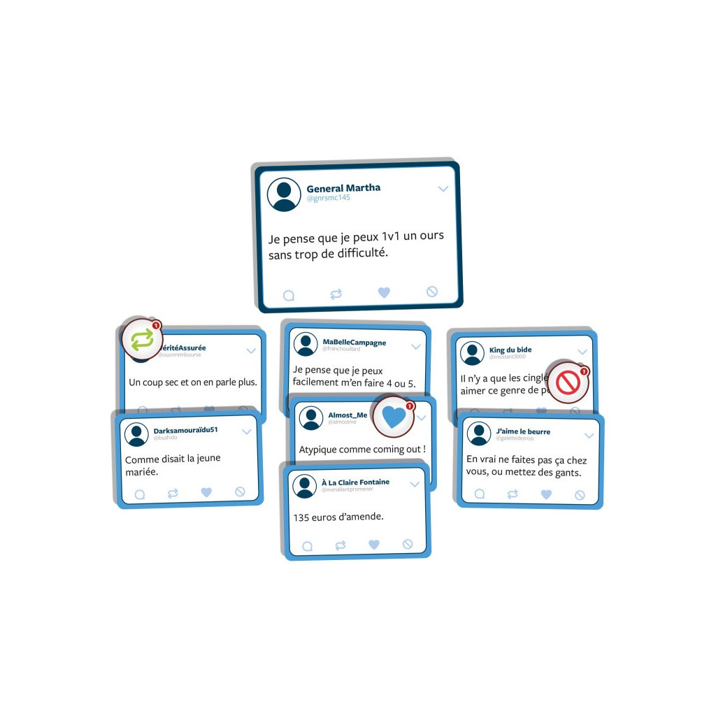 Come up with your best punchline to trigger a maximum number of reactions in the party game Va te faire Ban, 100% inspired by real tweets!