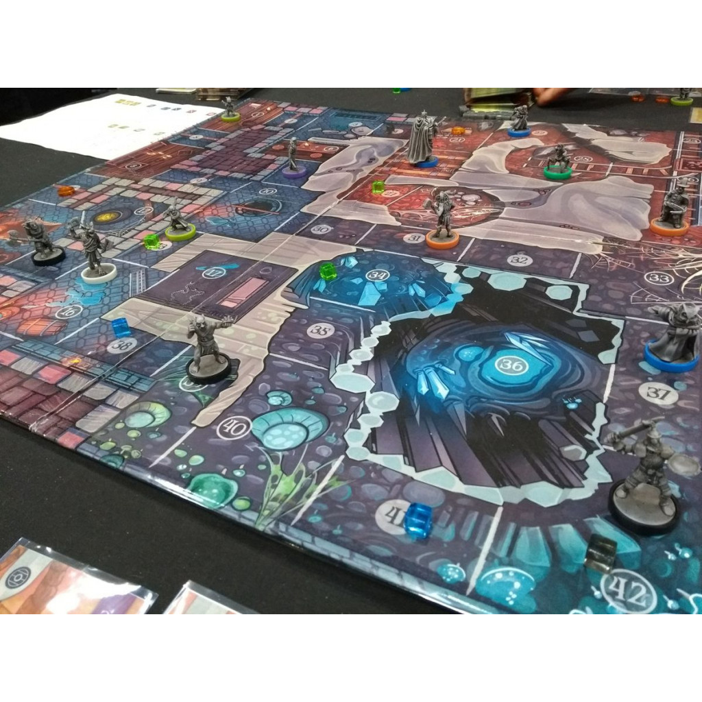 Take control of one of four factions: the Mage Guild, the agile Gnomads, the versatile Lawbringers or the hard-hitting Pit Fighters. Each brings its own style of play, with unique action card decks determining its abilities on the battlefield, so plan your tactics carefully. Progress through the ruins to grab the crystals you so desperately desire, or focus your efforts on suppressing the opposition - but beware, danger may lurk in the darkness.....