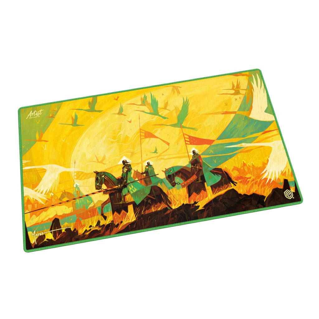 The Play-Mat from Ultimate Guard's Artist Edition #3, featuring artwork by Magic: The Gathering artist Dominik Mayer, is a high-quality, 61 x 35 cm play-mat that enhances the gaming experience while protecting TCG cards, sleeves, and accessories from scratches, wear, and dirt. The 2 mm thick, soft-cushioned play-mat is made from natural rubber and features our trusted anti-slip underside along with a premium, soft fabric surface. The play-mat's stitched edges prevent fraying and ensure long-lasting durability.