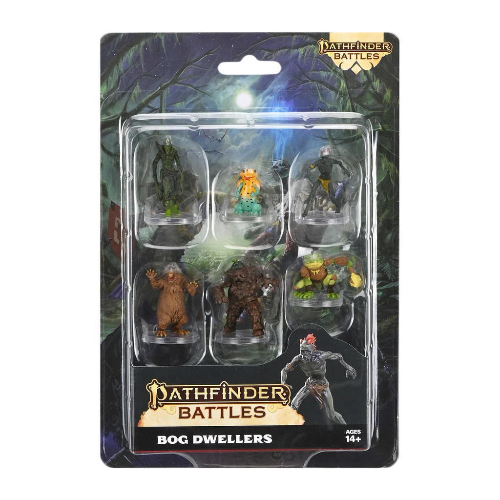 Explore Golarion's dangerous bogs and swamps with the new Pathfinder Battles: Bog Dwellers pre-painted miniatures set! This set features a Boggard Scout, Bog Mummy, Castoroides, Grimstalker, Mudwretch, and Shimmernewt.