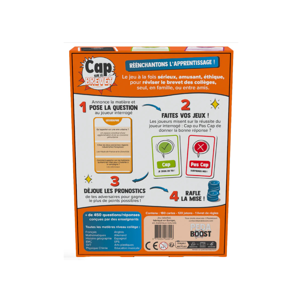 Cap sur le Brevet porte sur l'ensemble des connaissances niveau collège (de la 6eme à la 3eme), dans le but d'être incollable au brevet des collèges !