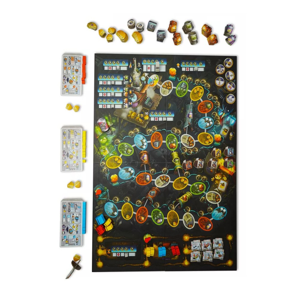 Conçu pour 1 à 5 joueurs, First Rat s’avère malin en termes de prises de décision avec comme originalité des déplacements stratégiques (sans jets de dés) de votre équipe de rongeurs sur une piste commune qui fait perdurer une interaction bien dosée entre les différents protagonistes.