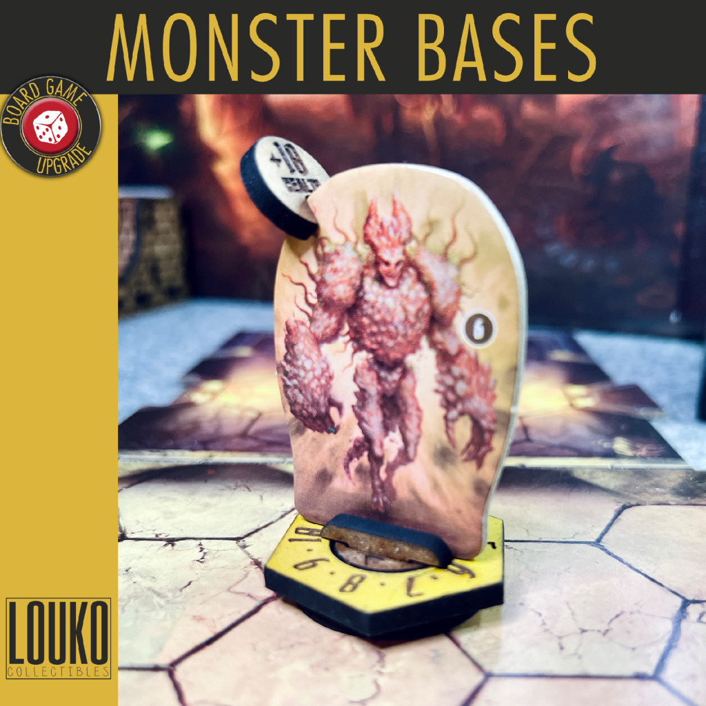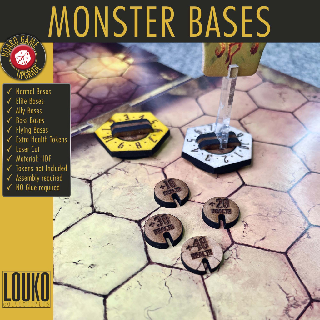 Have all damage marked on the monsters instead of the stat cards speeding up gameplay. Each base is color coded to help distinguish enemies from allies and elites from bosses.