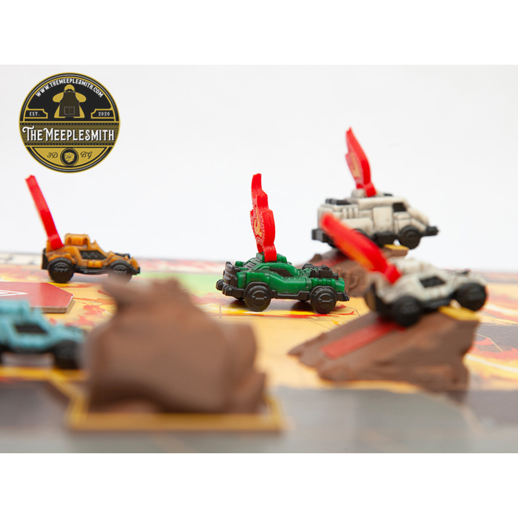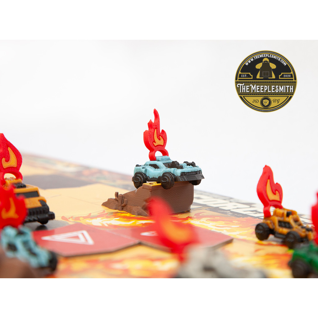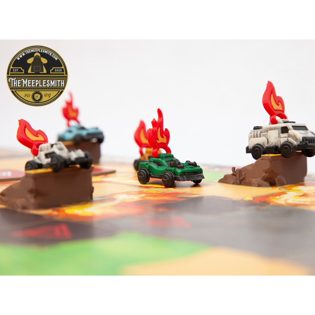 These flame markers are designed to clip onto your vehicles in Thunder Road: Vendetta when they’ve caught fire, turning game chaos into visual clarity. No more confusion over which cars are burning – now it’s instantly visible on the board.
