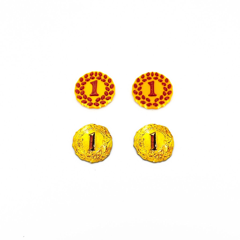 Enhance your gaming experience! Instead of simple cardboard tokens, you get high-quality 3D coins in two colors – printed on both sides and with a genuine 3D texture.