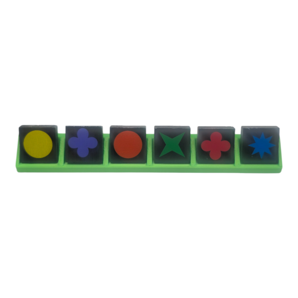 Enhance your Qwirkle game experience with this practical tile holder designed to hold 6 tiles (19 x 19 mm). Keep your tiles neatly aligned and easy to read, so you can focus on strategy instead of handling pieces.