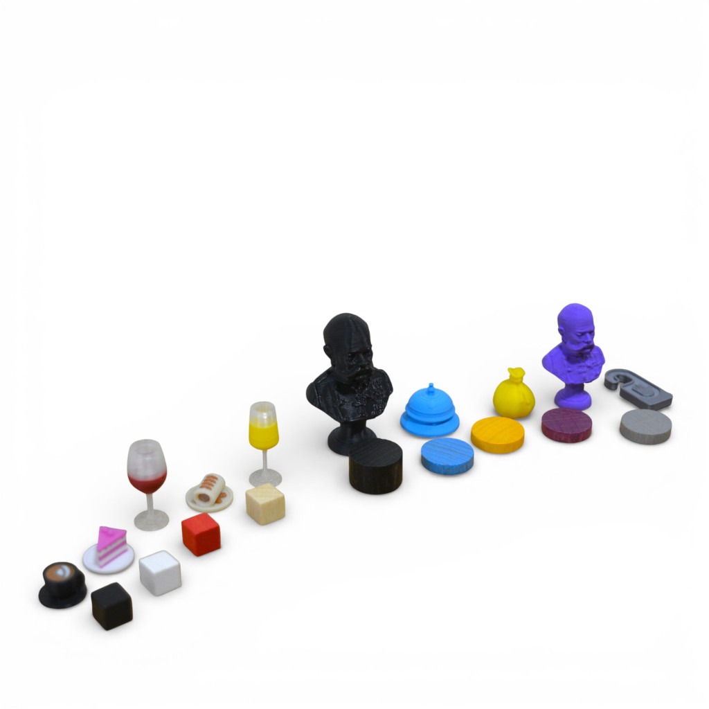 Unofficial product: This is a deluxe component upgrade kit created by a fan and developed by a third party. We are not affiliated, endorsed, or officially connected in any way with Simone Luciani, Virginio Gigli, Lookout Games, Mayfair Games, Maldito Games, or any other rights holders of Grand Austria Hotel. Grand Austria Hotel and all related names, logos, and game content are trademarks or copyrights of their respective owners. This product is compatible with the game but is not an official product of the aforementioned parties.