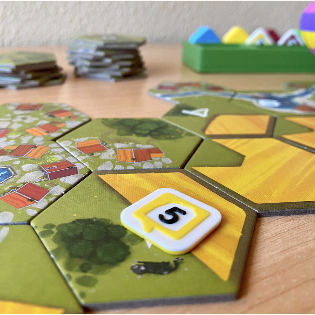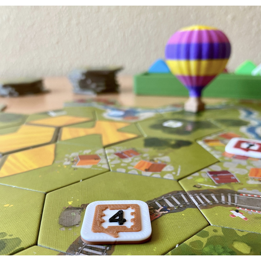 Game elements NOT included. They are shown for illustrative purposes only. Unofficial Product: This is a third-party, fan-made deluxe component upgrade kit for the board game Dorfromantik: The Board Game. We are not affiliated with, endorsed by, or in any way officially connected to Pegasus Spiele, Toukana Interactive, or any other rights holders of Dorfromantik. Dorfromantik and all related names, logos, and game content are trademarks or copyrights of their respective owners. This product is a compatible accessory and not an official product of the aforementioned parties.