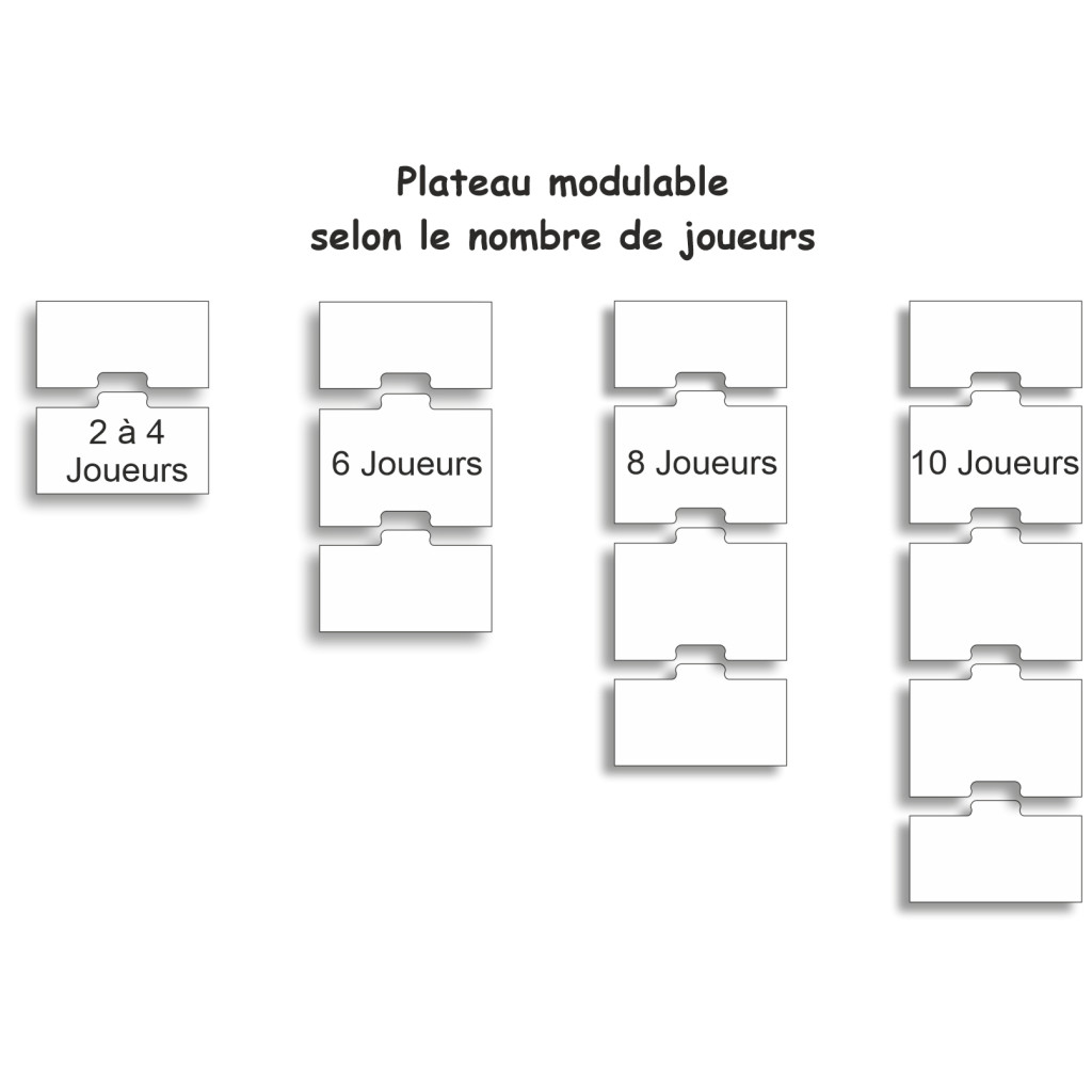 - Total dimensions of the 10-player board: 31.4 cm x 92.5 cm