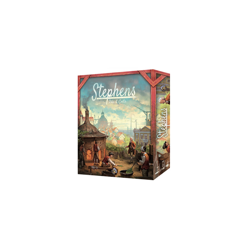 In Stephens, players compete amongst one another in the role of master glassmakers working at the now-famous Stephens Factory to become the most prestigious figure in town…after Stephens, of course. Through clever and cunning planning, all players will develop their works, invest in new businesses, and promote the creation of jobs. Through a unique action-selection mechanism, on their turn players choose from a variety of options, either by activating the Stephens factory or by activating one of their personal investments.
