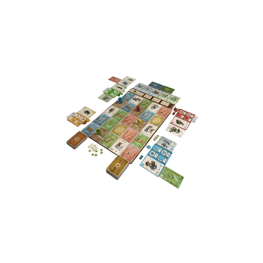 The game is played over 4 rounds and it is built around a movement-puzzle mechanic, where each turn presents a small riddle: how to best combine your party's movement abilities to navigate the map and collect the right cards. The players try to complete as many adventure cards as possible and gain victory points. These points symbolize the fame and wealth, both material and spiritual, that their group has acquired.