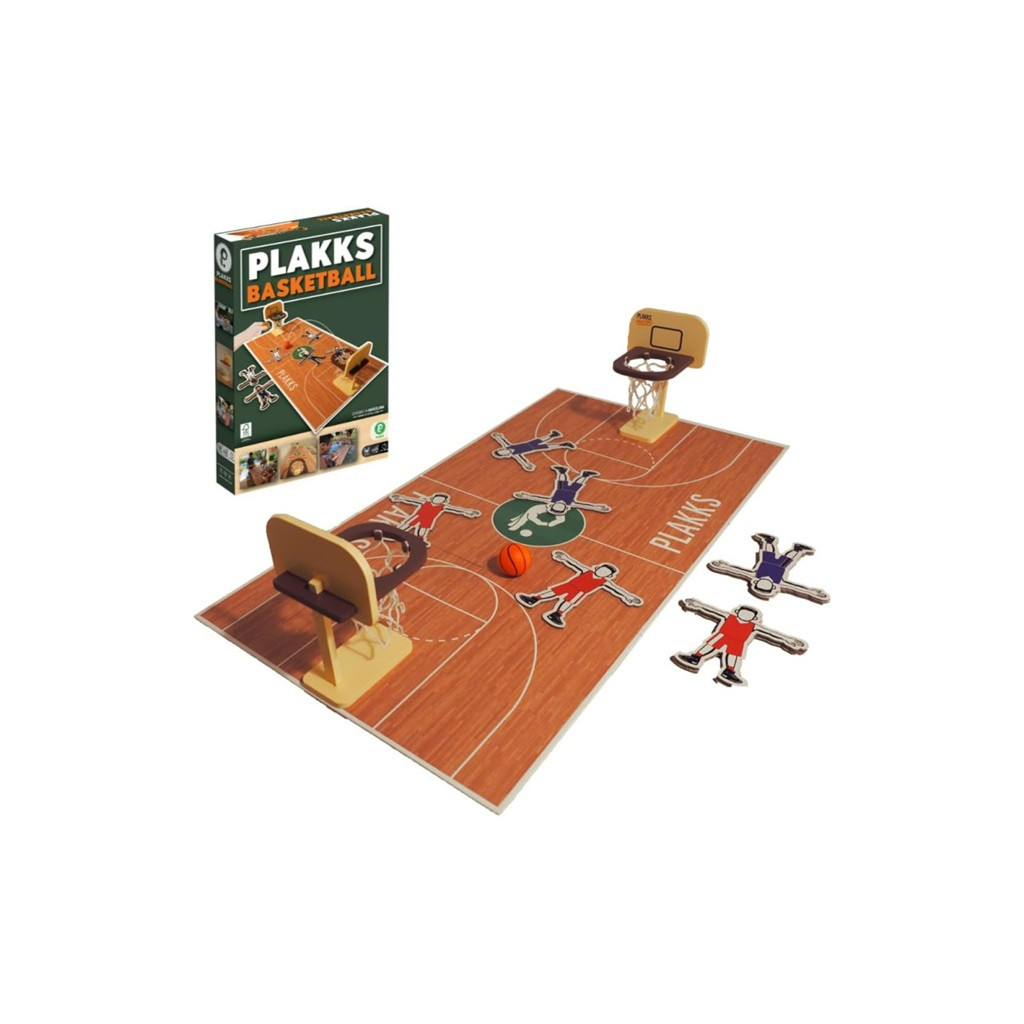 A new way to play basketball! Each time you score a basket, you advance one of your substitutes into the opposing team's half. The first coach to place five players in enemy territory wins the game. Each shot is therefore a combination of skill and timing: should you play it safe with a two-point shot or attempt a long shot with a rebound to turn the game around? A game lasts between 5 and 15 minutes, ideal for family evenings, cafes, or quick matches in three winning rounds. With more than 6 languages on the pieces, anyone aged 6 and up can jump right into the adventure and feel the excitement of the cheering crowd.