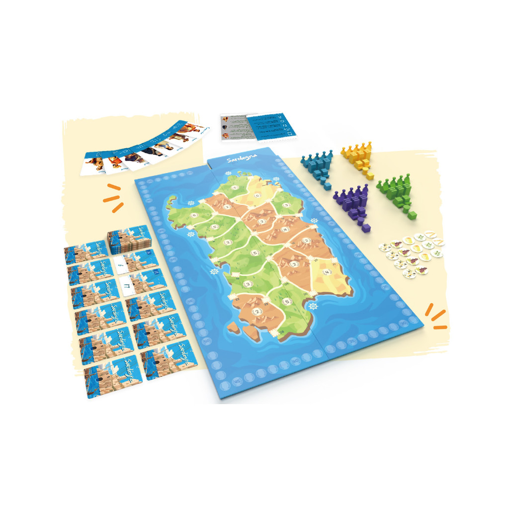 In Sardegna, players use character cards to deploy and maneuver pieces, claiming influence across the island's 16 provinces. In each round, Victory Points are up for grabs for the two players with the most sway in the scoring location. However, Strategy is key because you’ll only know the next two scoring locations at any time. So, clever timing, a keen wit, and preparation will be your greatest allies.