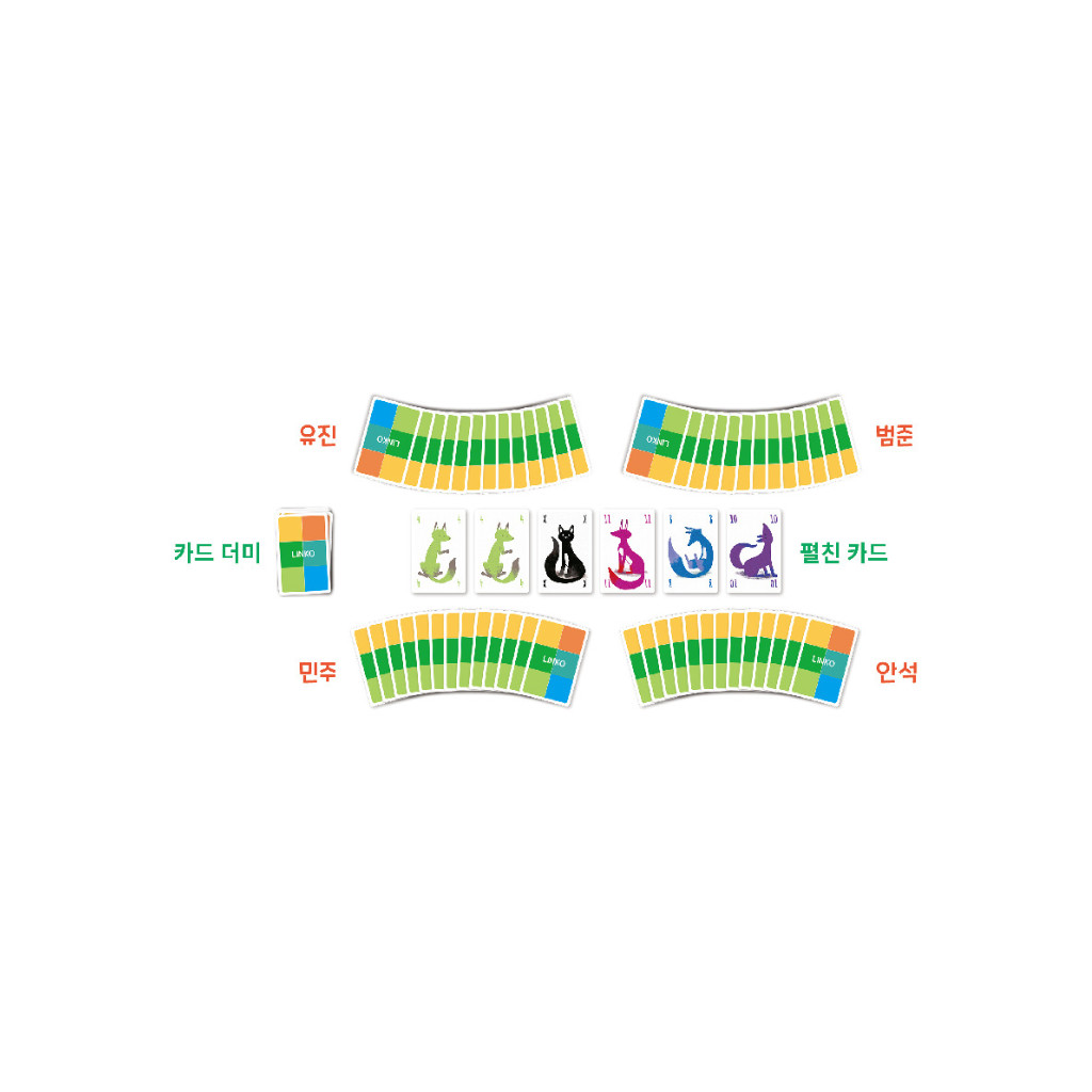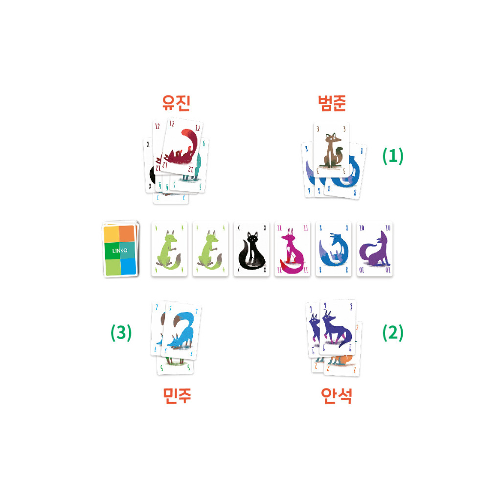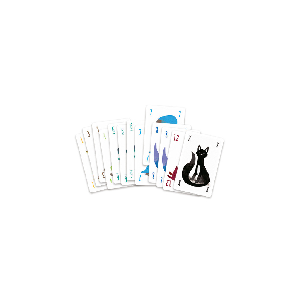 The lynx is loose! Play one or more card of the same value from your hand in front of you. Then, if you played the same number of cards, but a higher value, than the cards on someone else‘s stack, you can steal them and link them to your own cards, or make them discard and draw more cards to their hand. Have the most cards in your stack to win!