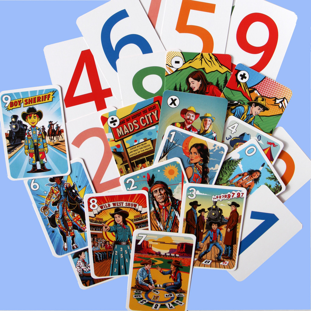 Forget holiday workbooks and endless sums. Welcome to the Wild West, where numbers are no longer homework, but ammunition. Mads and Cowboys is 11 games in a single pack of cards, an endless adventure where intuition counts as much as thinking.