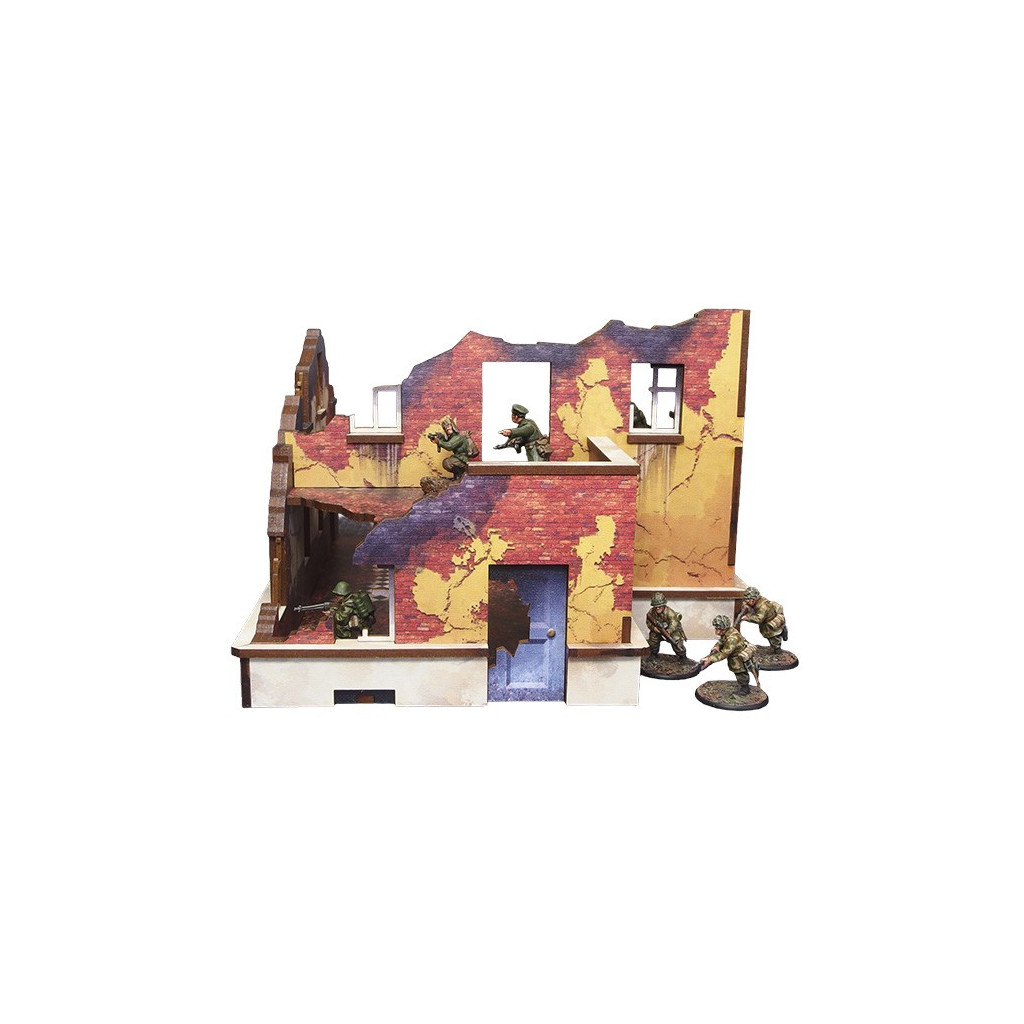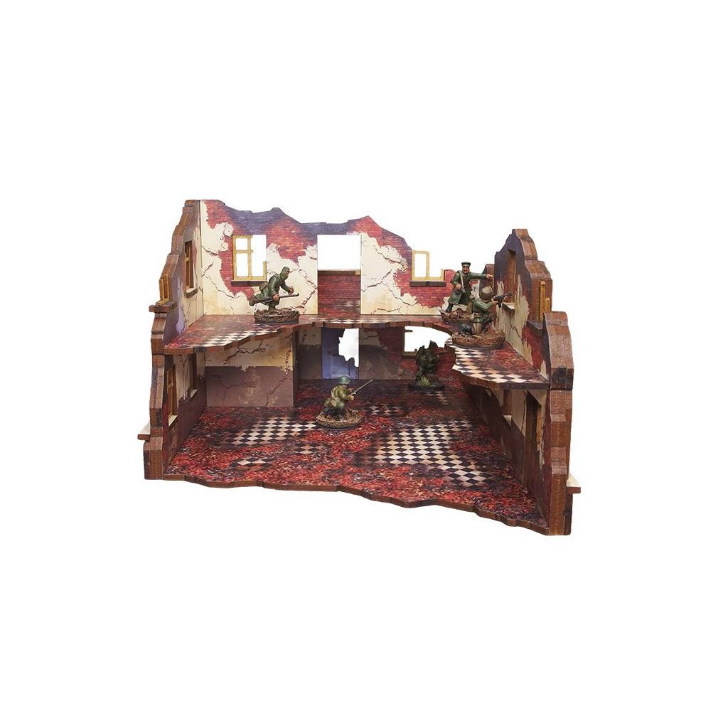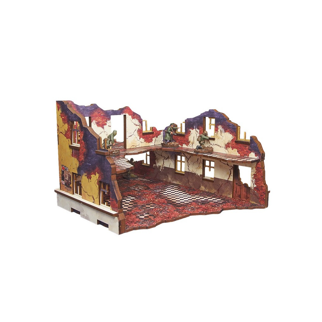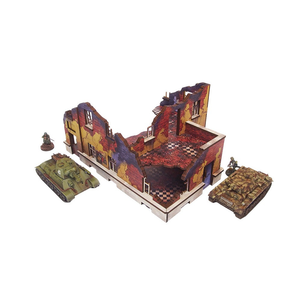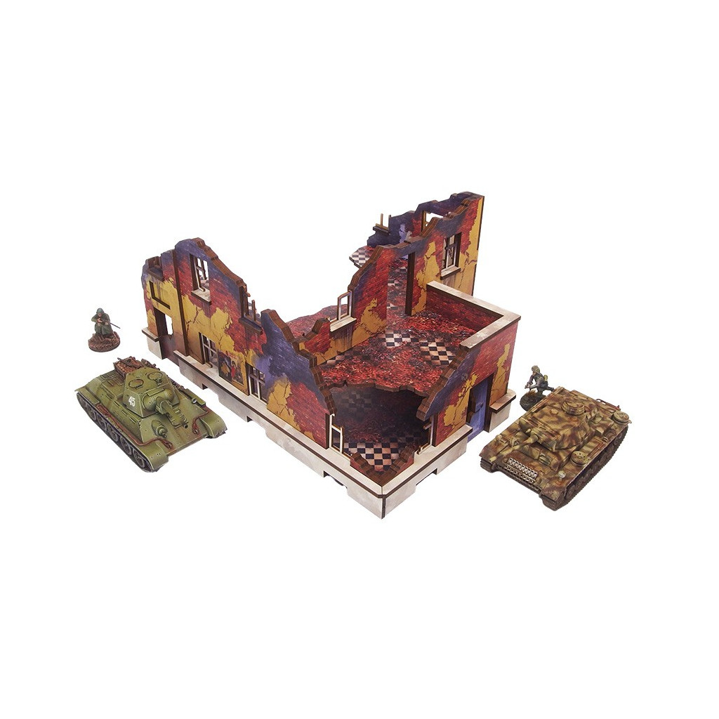 Multicolor prepainted (UV-printed) WW2 Ostfront Stalingrad School Left (with balcony) is a ruined half of school building with 2 remaining levels and accessible colorful interiors that forms a full ruined schoold building together with Stalingrad School Right