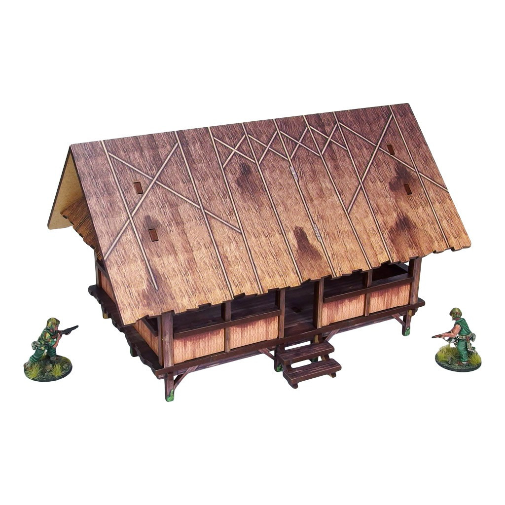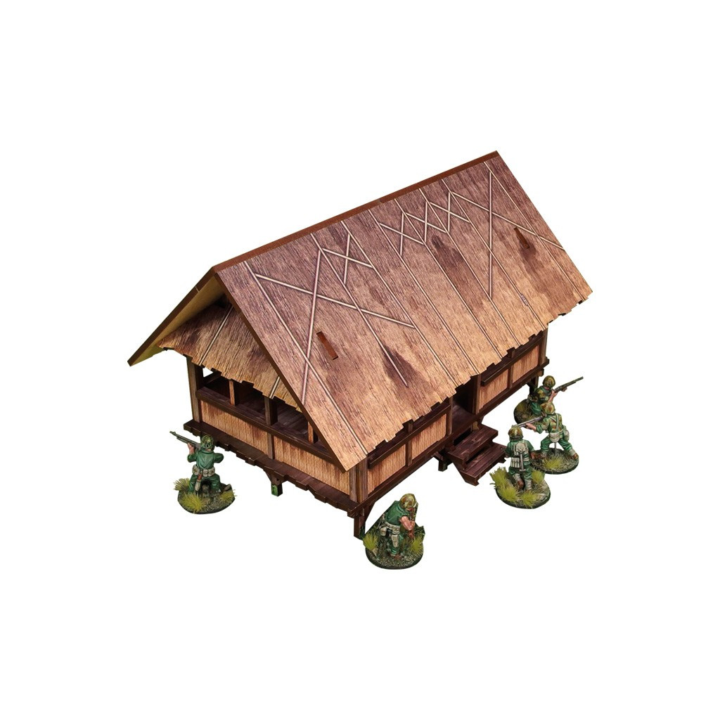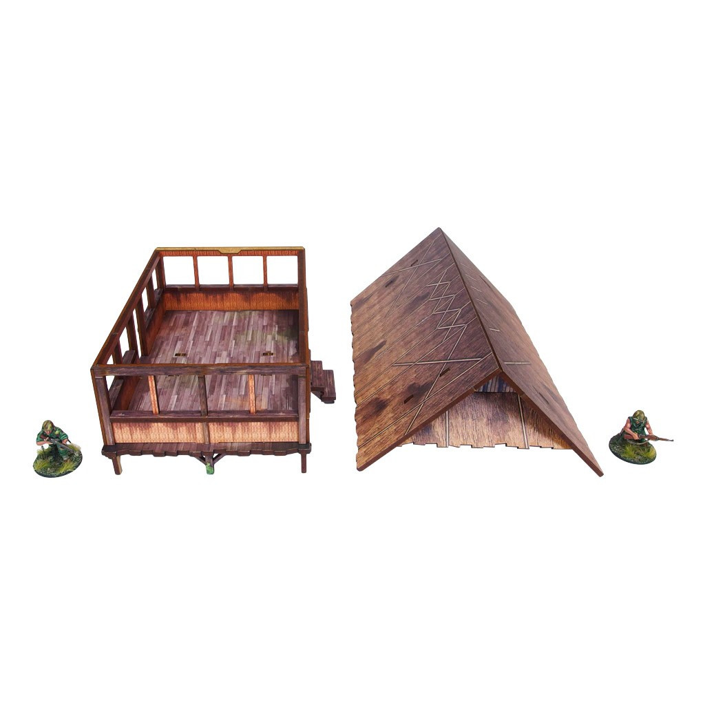 Multicolor prepainted (UV-printed) WW2 Pacific Kitchen (1) is a simple open and thatched roof building mounted on stilts, pefect to represent common South East Asia and Oceania architecture of 20th century.