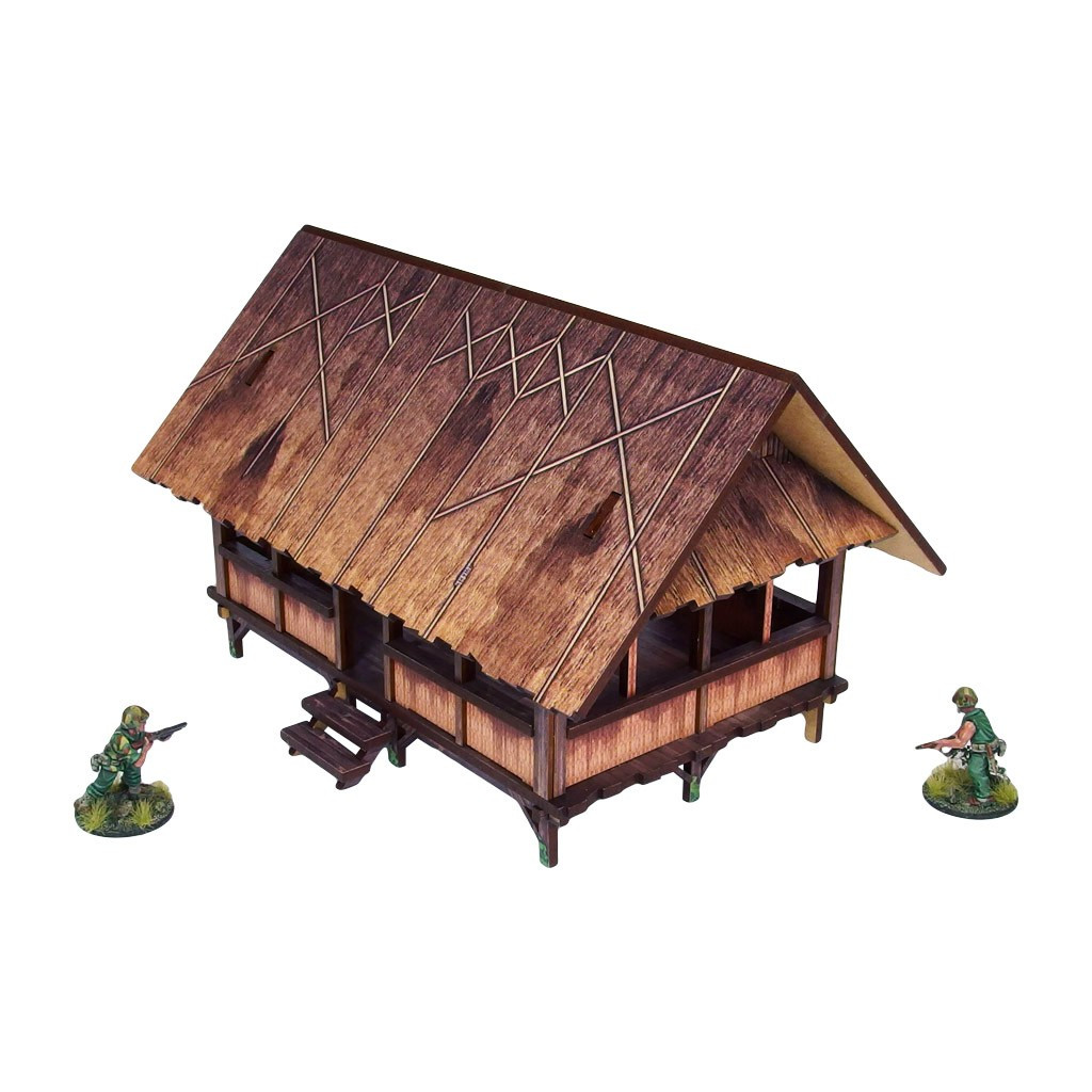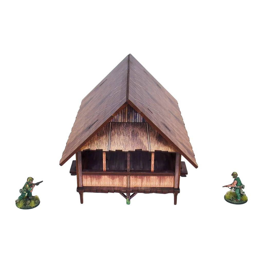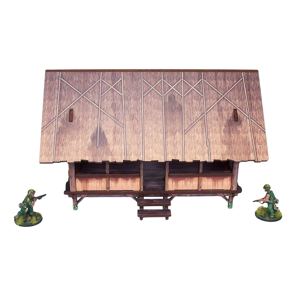 Multicolor prepainted (UV-printed) WW2 Pacific Kitchen (1) is a simple open and thatched roof building mounted on stilts, pefect to represent common South East Asia and Oceania architecture of 20th century.